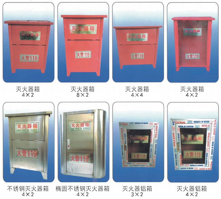 灭火器箱是各类公共场所、高层建筑、厂房仓房等处放置灭火器、砂包等灭火器材的必备器具,以便及时扑灭初期火灾。灭火器箱造型美观、使用方便、经久耐用。